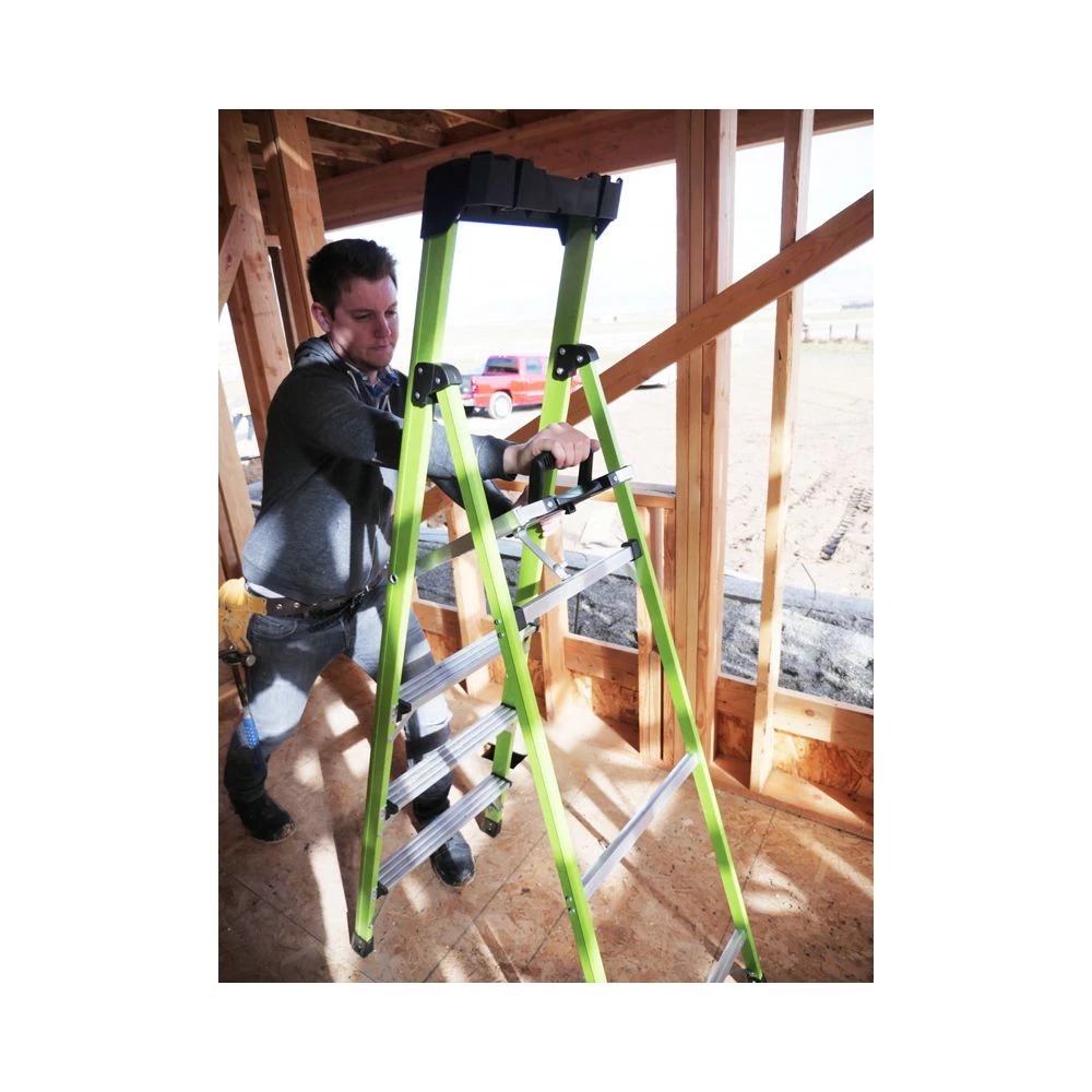 Trappestigen er en ekstra kraftig stige i håndværkerkvalitetet. For at sikre den gode kvalitet er stigen fremstillet i glasfiber komposit materiale – giver en let & stærk stige.