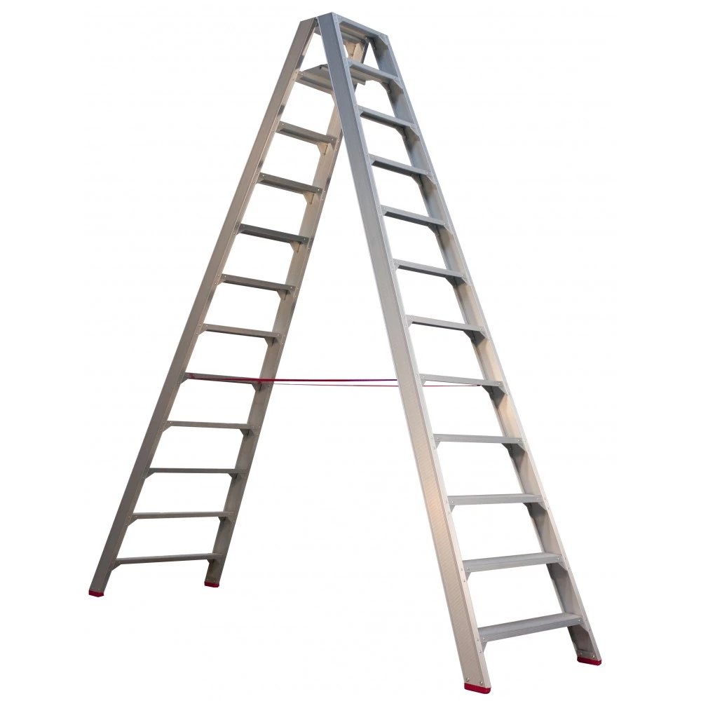 Solid trappestige fra Jumbo med trin på begge sider med 10 cm brede trin, Kraftige vanger med elokseret overflade, 12-punktssamlinger og kraftige hjørneforstærkninger på alle trin.