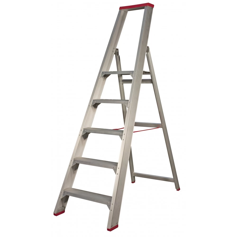 Solid trappestige fra Jumbo med stor platform og bøjle med værktøjsbakke.