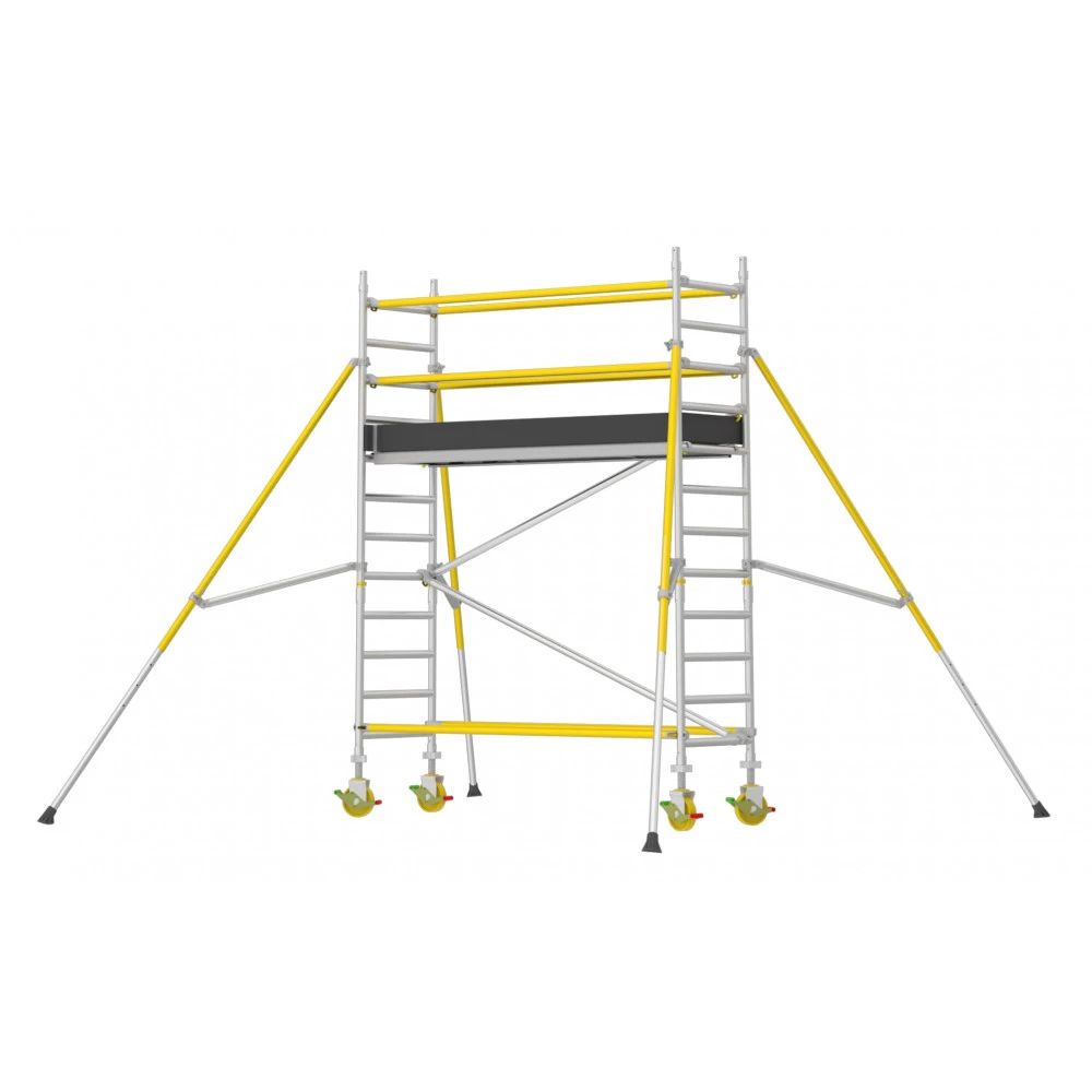 Rullestillads (0,75 x 2,5 m) der er let at samle med overlappende afstivning og smarte løsninger for et mere sikkert arbejdsmiljø, hvor pladsen er trang