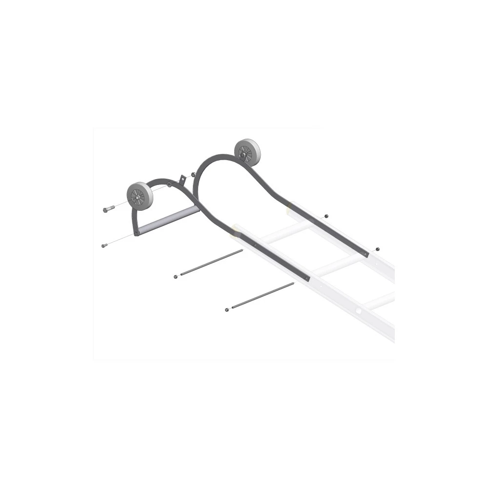 Stigen rulles op til tagryggen ved hjælp af hjulene og vendes om, så krogen griber fat om tagryggen