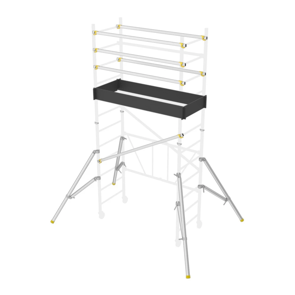 Kan kompletteras med justerbara ben för säker uppställning vid nivåskillnader